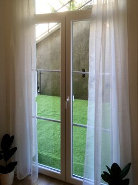 - A 17 m2-es, műfűvel borított terasz ideális méretű pihenéshez és baráti összejövetelekhez.