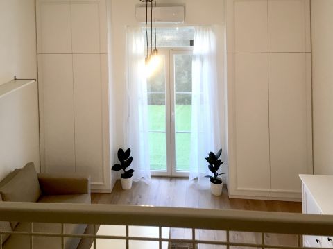 - A szoba kényelmes nappaliként funkcionálhat, mivel a konyha fölé épített fekvőgaléria praktikusan biztosítja az alvás lehetőségét.