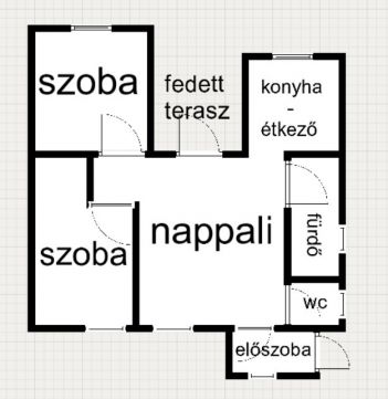 •Elrendezés: nappali + konyha-étkező + 2 hálószoba fürdő + külön WC