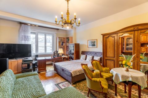 A Budai Vár és a Tabán között, Buda kulturális és infrastrukturális középpontjában eladó egy 80 m²-es, délnyugati tájolású, átlagos állapotú, nagypolgári lakás a 6. emeleten.