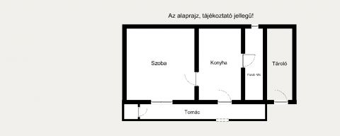 Kisebb ház: 50 m², szoba, konyha, fürdőszoba, tároló és műhely.