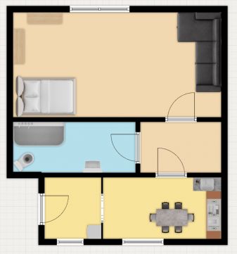 A tágas szoba, a külön étkezős nagy konyha, és a külön WC kényelmet biztosít, a klíma pedig gondoskodik a kellemes hőmérsékletről minden évszakban.