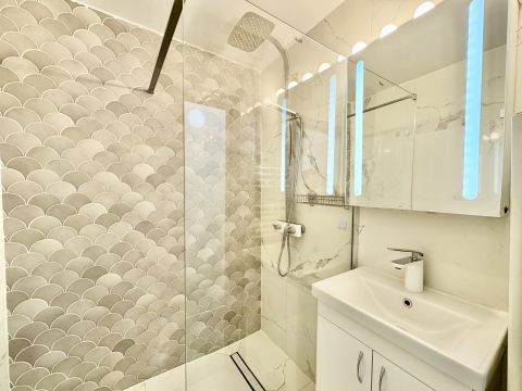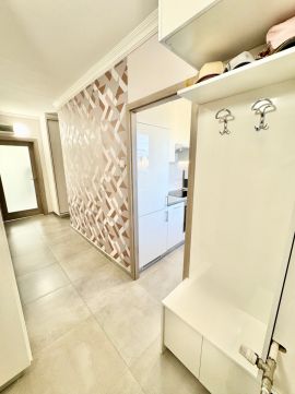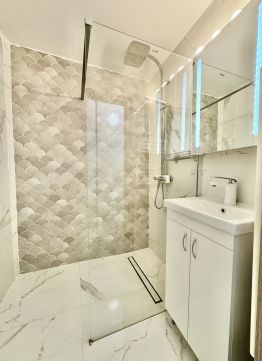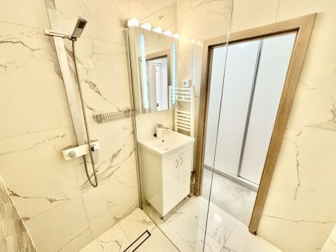 A fürdőszobában épített zuhanyzó kapott helyet – ami valódi ritkaság a panelépületek között –, a redőnyök elektromosan mozgathatók, minden ablak szúnyoghálóval ellátott, a komfortot pedig új klímák biztosítják.