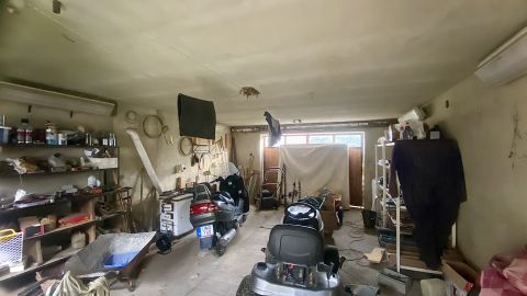 A lakótérből is megközelíthető alagsor kb. 60 m²-es, ahol több tárolóhelyiség és garázs kapott helyet — ideális megoldás akár barkácsoláshoz vagy tároláshoz.