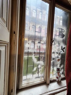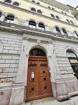 Budapest 8. kerület, Somogyi Béla utcában eladó egy 43 nm alapterületű, belső kétszintes, 75 nm összterületű lakás egy klasszikus, körfolyosós polgári ház első emeletén.