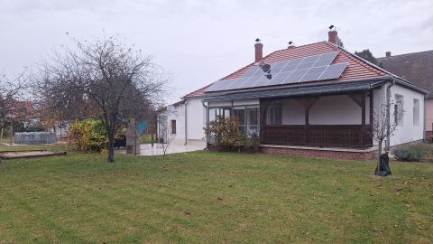 Nagy teraszokkal, világos előszobával, 4 szobával, tágas fürdőszobával, étkezős konyhával rendelkezik, így bőven van hely a kényelmes életvitelhez. A ház kiváló statikai állapotú, azonnal költözhető, nem igényel felújítást. A fűtés a napelemeknek köszönhetően elektromos cirkó rendszerrel megoldott, a nyári hónapokban pedig a klíma biztosítja a kellemes hőmérsékletet. A házhoz tartozik egy fedett beálló, fedett kerti kiülő és a vendégek számára egy telepített lakókocsi is. A szépen gondozott kert, a 34 m utcafronti széles dupla telek, az ásott kút tovább fokozza az ingatlan értékét, lehetőséget adva a zavartalan pihenésre és a kikapcsolódásra a saját otthonában.