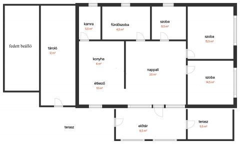- utcafronti terasz (9nm), hátsó terasz ( 14,8nm), fedett beálló (21 nm)