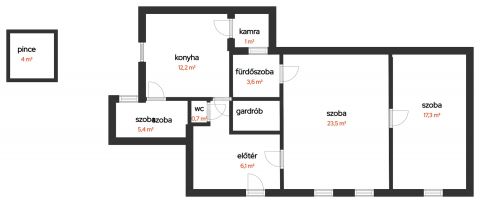 A lakás állapota felújítandó, melyhez tartozik egy saját 4 nm - es tároló.