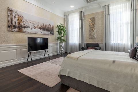 Azonnal költözhető, elegáns, 170 m2-es, 3 szobás, erkélyes lakás, igényes bútorzattal eladó, pezsgő, modern, mégis klasszikus hangulatú környezetben.