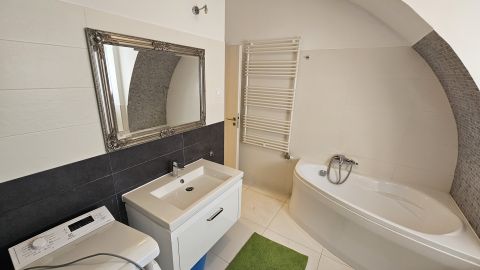 Tatán az Öreg-tó partján 2016-ban épült 45 lakásos, zárt lakópark müemlék épületének földszintjén található, 3 szobás, teljeskörűen berendezett, önálló fűtési rendszerrel ellátott otthon eladó. A lakást a magas minőség, elegancia, praktikus elrendezés és az élhető terek jellemzik.