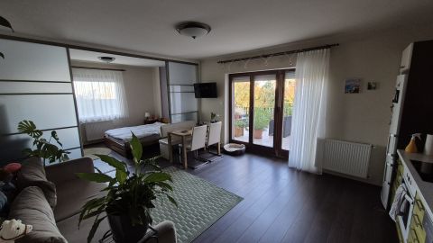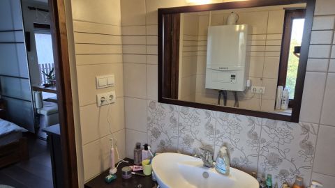 A lakás a kétszintes ház első emeletén található, önálló bejárattal rendelkezik.
