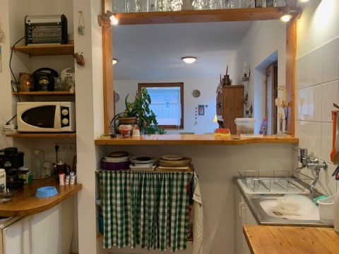 A 27 nm alapterületű, szigetelt garzon lakásban előszoba- konyha-étkező, kamra, szoba (17,35 nm), fürdőszoba helyiségek vannak, ennek a fűtése is cirkóval megoldott.