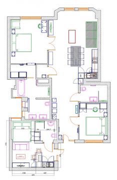 •egy tágas, nappali + konyha + 2 hálószoba + 2 fürdőszobás lakásra,