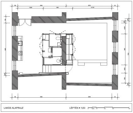 Elrendezés: tágas, egybenyitott tér (eredetileg 2 szobás), exkluzív kialakítással