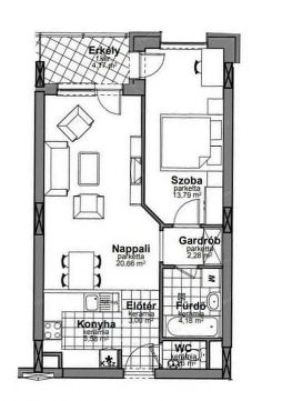 - A lakás 51 m²-es, amihez egy 4 m2-es kerti nézetű erkély társul