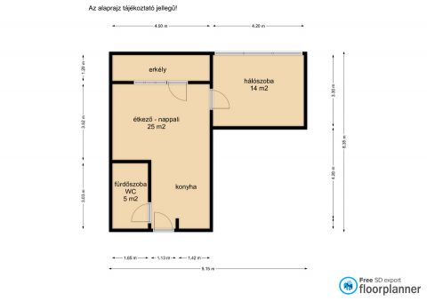 - A lakás 50 m2. Tágas konyha-étkező-nappali, hálószoba, fürdőszoba és erkély van.
