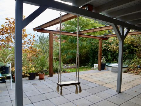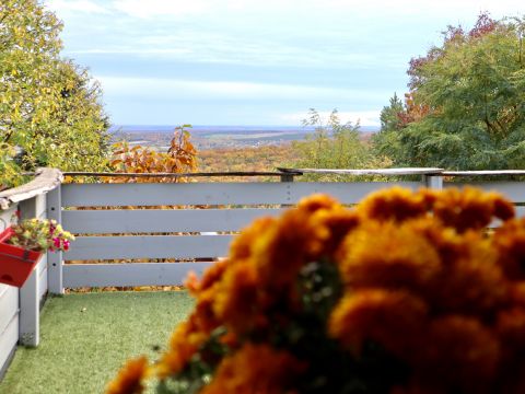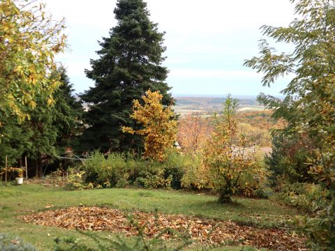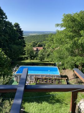A teraszokról csodálatos panoráma tárul elénk, a kertben magas ágyás, mobil medencének kialakított sík terület, hatalmas árnyat adó fák teszik szerethetővé ezt a háborítatlan csend és tiszta levegő jellemezte otthont.