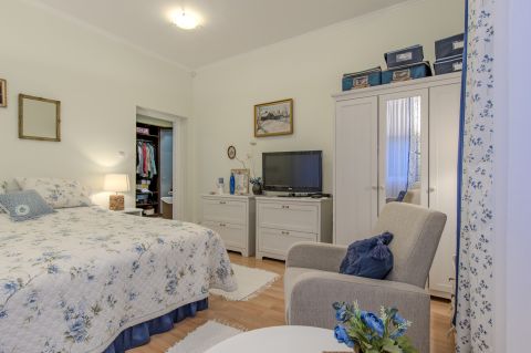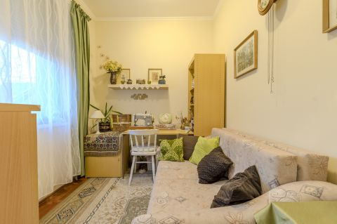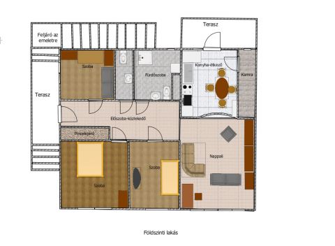 -Földszinti lakás: tágas nappali, 3 hálószoba, külön konyha, kamra, fürdőszoba, WC, és hátsó terasz.