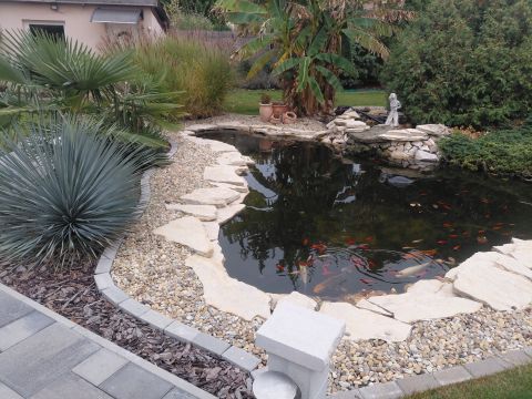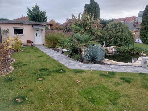 A csillogó medence, a halastó, a kerti sütögető és az illatot árasztó mediterrán növények együtt teremtenek pihentető, mediterrán hangulatot – mindezt Budapest és Dunaharaszti közvetlen közelében!