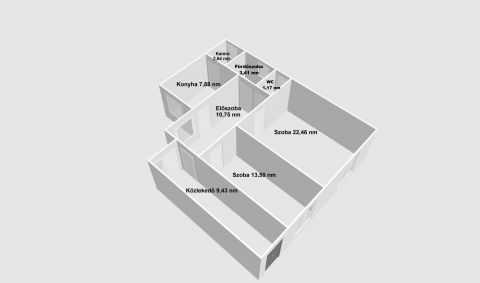 Az ingatlan 71 m² alapterületű, a helyiségek a mindennapi élethez jól kialakítottak: közlekedő, előszoba, két tágas szoba, konyha kamrával, külön WC és fürdőszoba.