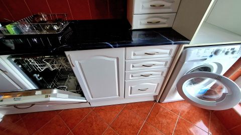 - A konyhabútorba beépítésre került egy 6 terítékes mosogatógép, szag elszívó, valamint egy kerámialapos tűzhely is a rendelkezésre áll. (A mosógép és a hűtő, már nincs a konyhában!)