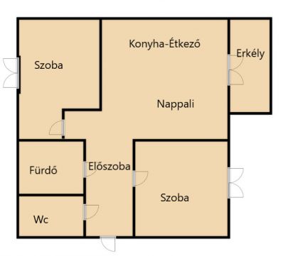 - 2 napfényes, tágas szoba, francia erkéllyel