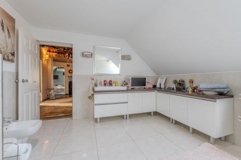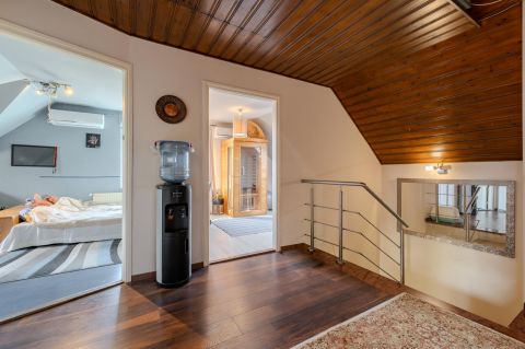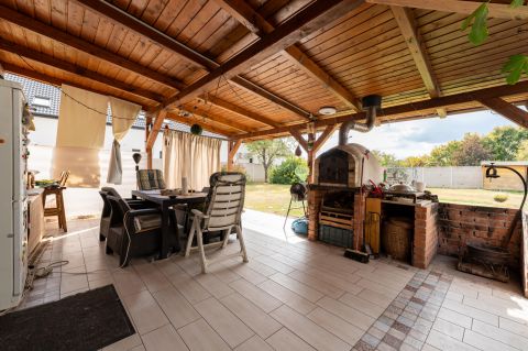 Elrendezés: 6 szoba, 2 fürdőszoba és 1 különálló WC. Az amerikai konyhás nappalival kiegészített, hangulatos, átjárható belső terek ideálisak a családi életre.