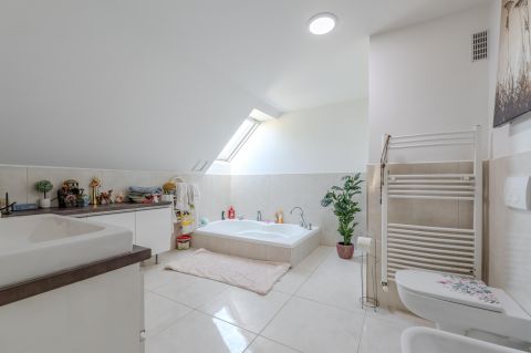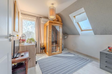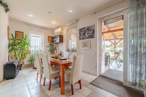 Az 1996-ban épült, 200 m²-es, 6 szobás otthon tágas életteret kínál, délkeleti (DK) tájolásának köszönhetően világos.