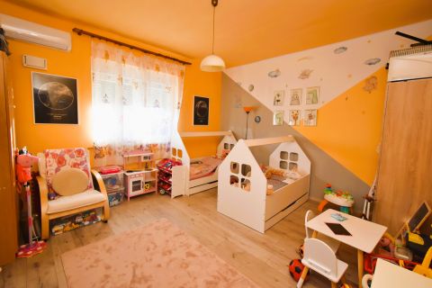 - A parkosított, körbekerített udvaron gyümölcsfák, kerti zuhany, medence és tároló is helyet kapott.