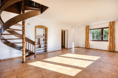 A belső terek rendkívül tudatos kialakítással, otthonos hangulattal rendelkeznek. Az alsó szinten tágas nappali, kényelmes konyha, egy szoba, fürdőszoba, külön wc és közlekedő található. Az emeletre elegáns csigalépcső vezet, ahol három szoba, egy fürdőszoba, külön wc, szauna szoba és tágas közlekedő biztosítja az otthon kényelmét. Már csak egy család hiányzik , hogy újra élettel teljen meg. Nem feltétlenül igényel teljes körű felújítást, de kisebb esztétikai vagy funkcionális beavatkozásokkal (festés, kisebb javítások, modernizálás) az állapota és az értéke tovább javítható, és igazán kellemes otthonná alakítható.