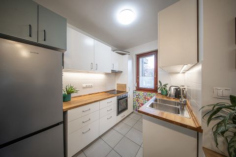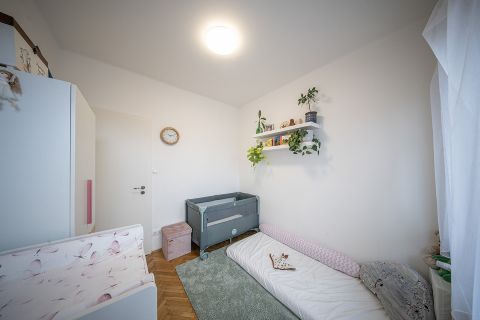 A lakás belső elrendezése rendkívül praktikus, az amerikai konyha és a tágas nappali tökéletes teret biztosít a közös pillanatokhoz.