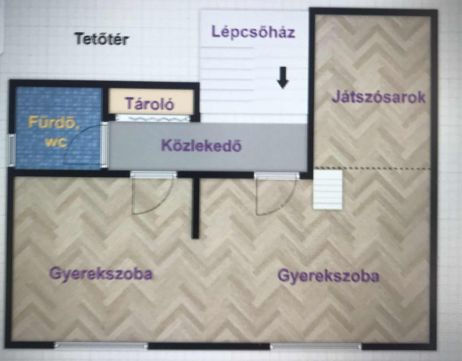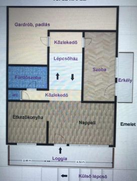 Az épület összesen 227 nm, tartozik hozzá egy 4 nm-es erkély, egy 11 nm-es loggia és egy 6 nm-es fedett terasz is. A házban 1 autó tárolására alkalmas garázs van, a részben térkövezett udvaron pedig további 3-4 gépkocsi számára elegendő terület található. A háznak 2 külön bejárata van és bár jelenleg a 2 lakrész nincs elválasztva egymástól, de csekély anyagi ráfordítással megoldható a teljes elszeparálás.