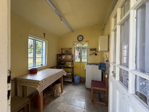 A ház három szobával rendelkezik, melyek tágasak és világosak, a természetes fény kellemes atmoszférát teremt. Az épülethez tartozik egy különálló, hagyományos kinti konyha, egy garázs, valamint több autóbeállási lehetőség is biztosított a telken belül.
