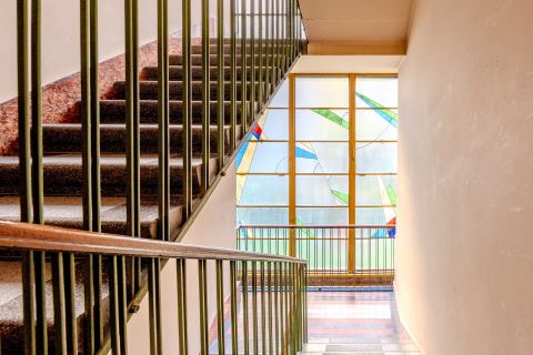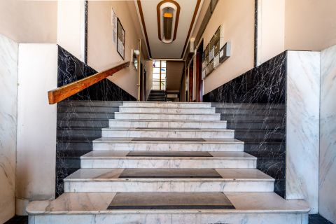 Az ingatlan egy klasszikus, 1941-ben épült Bauhaus stílusú épület magasföldszintjén helyezkedik el.