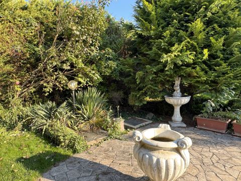 A parkosított, örökzöldekkel és díszcserjékkel beültetett kert a ház méltó folytatása.