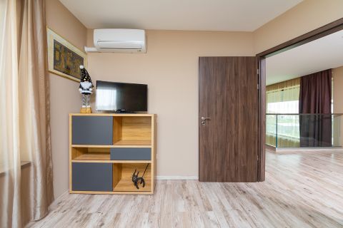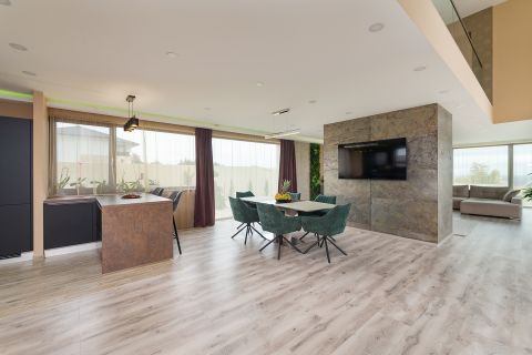 Az egyik szobához tartozó 15,8 nm-es terasz tökéletes helyszín a reggeli kávézáshoz vagy a baráti összejövetelekhez, ahonnan csodás panoráma nyílik a környező tájra.