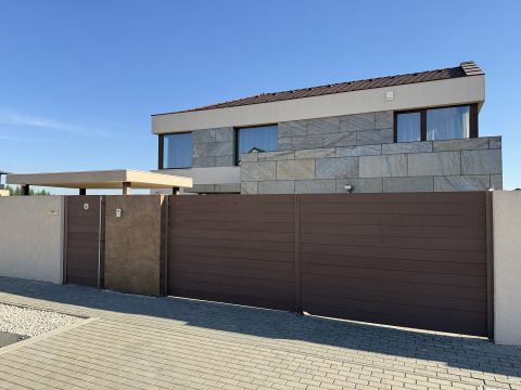 Építészetileg egyedi megoldásokkal, letisztult formavilággal, 2019-ben épült otthon, melyben tágas, világos terek, nagy üvegfelületek így lenyűgöző panorama biztosítja új tulajdonosa kényelmét. Ideális választás akik egy modern és luxus otthonra vágynak. Ez a használt ház nem csupán egy lakóhely, hanem egy életstílus, ahol a város közelsége és a természet harmóniája találkozik.