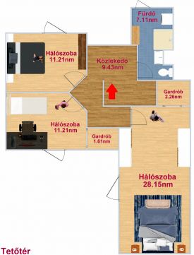 + A 66nm-es tetőtérben egy második fürdőszoba is ki lett alakítva, továbbá 3 db hálószoba amihez még saját gardróbok is ki lettek építve.