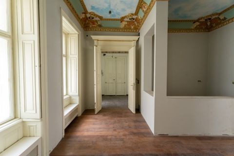 A terek különleges hangulatát eredeti, míves freskók adják, amelyek egyedi, művészi karaktert kölcsönöznek a lakásnak. A magas belmagasság, a tágas terek, a hatalmas ablakok és a finom részletek igazi nagypolgári eleganciát árasztanak.