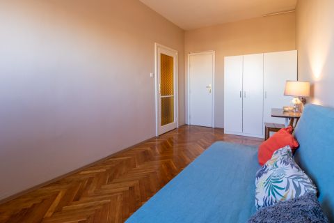 - Felosztása: előszoba, erkélyes nappali, hálószoba, konyha, kamra, konyha, közlekedő, fürdőszoba - wc.