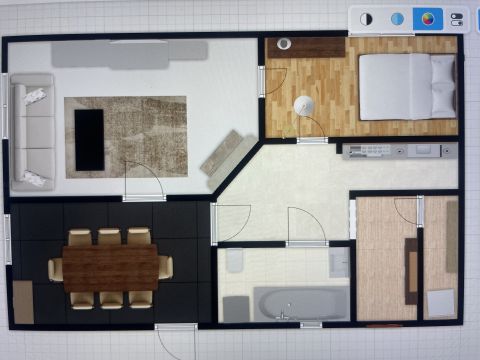 A szobákban laminált padló és parketta, a többi helyiségekben kerámia burkolatok vannak.