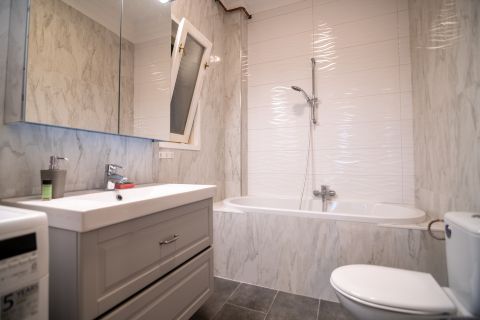 A felújítás során a lakás minden helyisége új hidegburkolatot, víz- és villanyvezetékhálózatot és új szanitereket kapott. A teljes fűtésrendszer is felújítására került, új radiátorokkal, a melegvízről és a fűtésről pedig kondenzációs kazán gondoskodik.