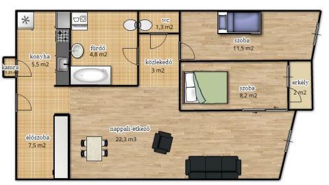 - 66 m2-nappali+2szoba