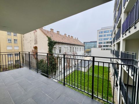 A nyugati tájolású, zöldre néző erkély a csendes belső udvarra néz, így a lakás kivételesen nyugodt és világos.