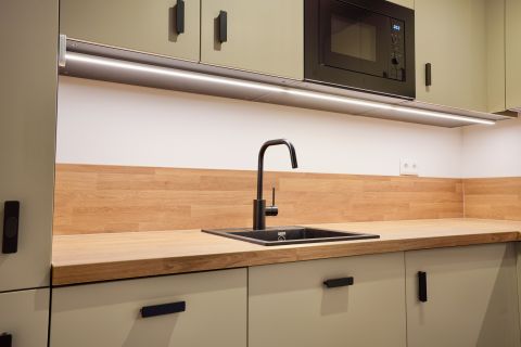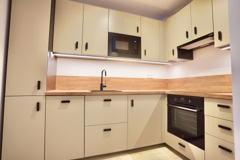 -modern konyha beépített gépekkel (mosogatógép, sütő, főzőlap, hűtő),