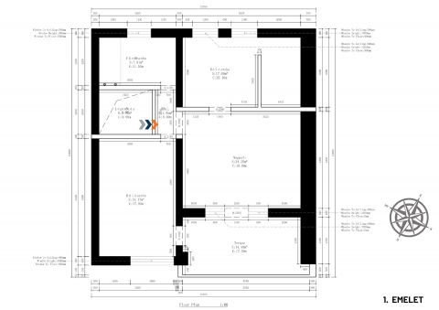 ➡️ Felosztása: lépcsőház, egy külön szoba és egy nagy, egybefüggő, beépített tetőtéri tér.
