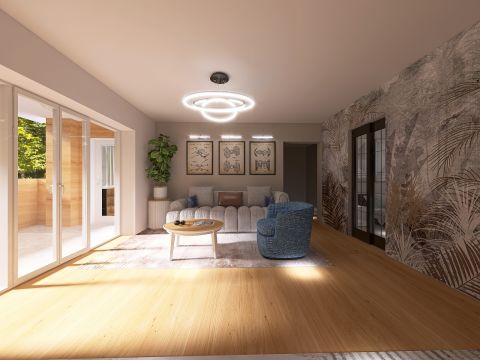 ✅ Felosztása: tágas nappali–étkező, háló- vagy dolgozószoba, gardrób, háztartási/gépészeti helyiség, konyha, zuhanyzós fürdőszoba, szauna, közlekedő, előtér.