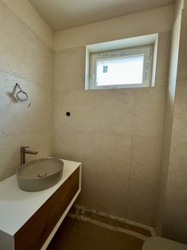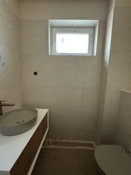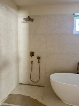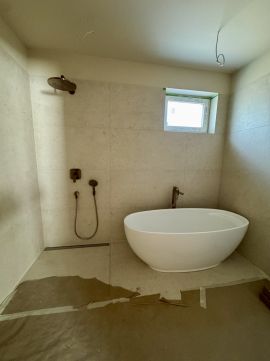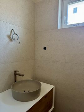 A fürdőszobában Zen Cersanit kád, Hansgrohe zuhany, valamint RAK mosdó és WC található. A falakat Benjamin Moore (USA) festék borítja, az ajtók pedig Juga Doors termékek. A fürdőszobai bútorzatot a Wellis biztosítja, amely stílusos és praktikus kialakításáról ismert.