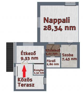 - Közös teraszról nyíló bejárat (egy szomszéddal megosztva)