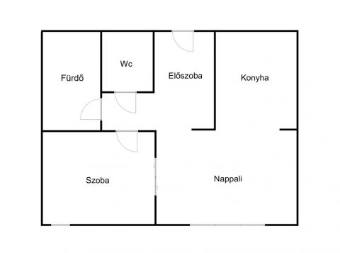 - Nappali + konyha + háló, külön fürdő - WC elrendezésű